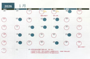 2026年1月営業カレンダー