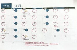 2026年3月営業カレンダー